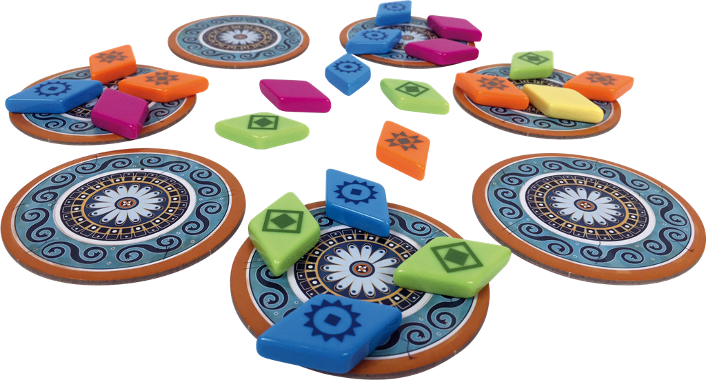 Dans AZUL Pavillon d’été, le principe des tuiles réparties sur les Fabriques reste le même. Vous pouvez choisir de prendre toutes les tuiles d’une couleur sur une fabrique ou au centre, plus une tuile de la couleur joker.