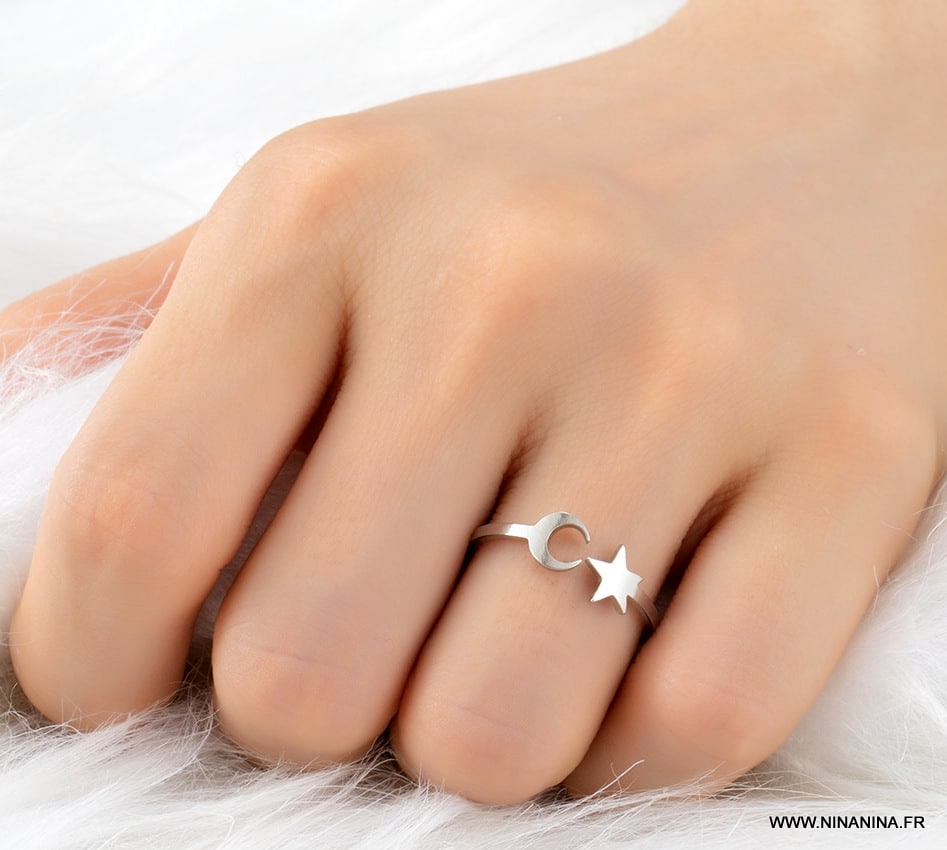 La Bague lune et étoile sera livrée dans une ravissante pochette en organza noir prête à offrir et, pour mettre en valeur votre cadeau, nous vous proposons une boite cadeau ou de bourse en cuir. D’autre part, nous vous offrons la possibilité d’envoyer les cadeaux directement chez le destinataire de votre choix en lui glissant un petit message personnalisé.