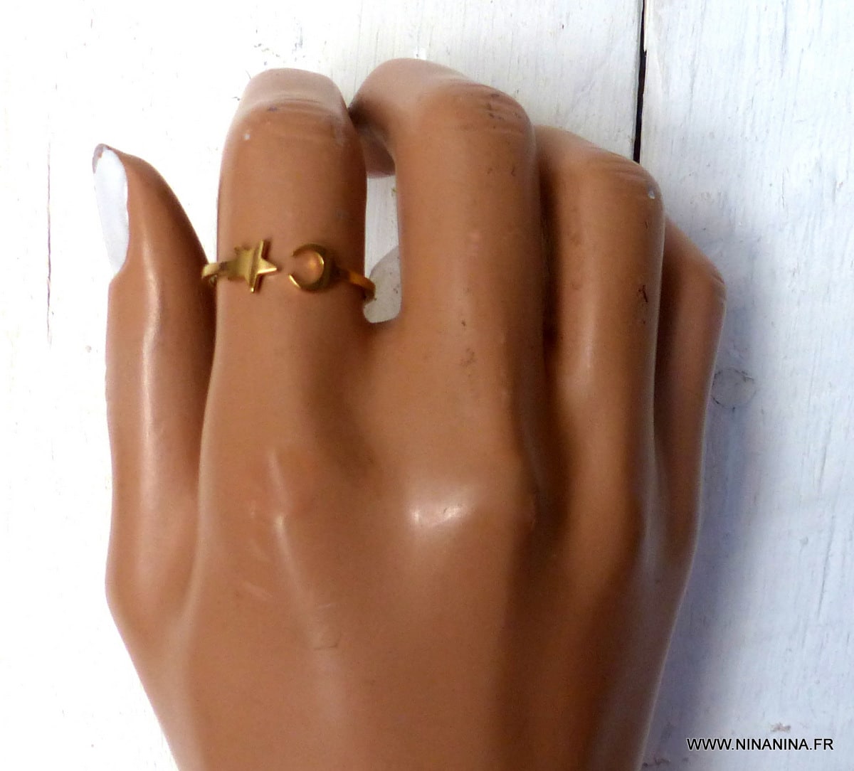 Sublimez votre main avec cette fine Bague lune et étoile Acier inoxydable doré ajustable, légère et délicate qui ne manquera pas son effet! Avec son motif lune et soleil fin et délicat, cette bague en acier inoxydable doré à prix mini vous fera rêver au milieu du stress quotidien et accompagnera avec harmonie toutes vos tenues dans n’importe quelle occasion. De quoi se ressourcer naturellerment tout en vaquant à ses occupations! Largeur : 0,6 cm. Poids : 1 g.