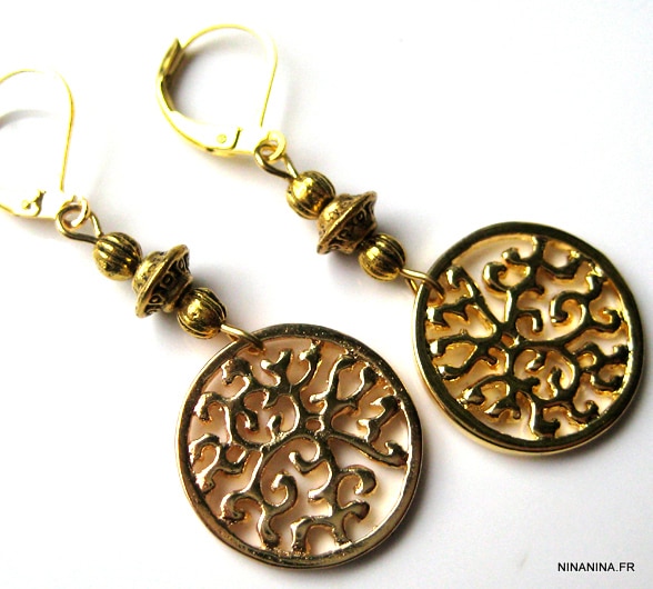 Boucles d’oreilles métal doré filigrané