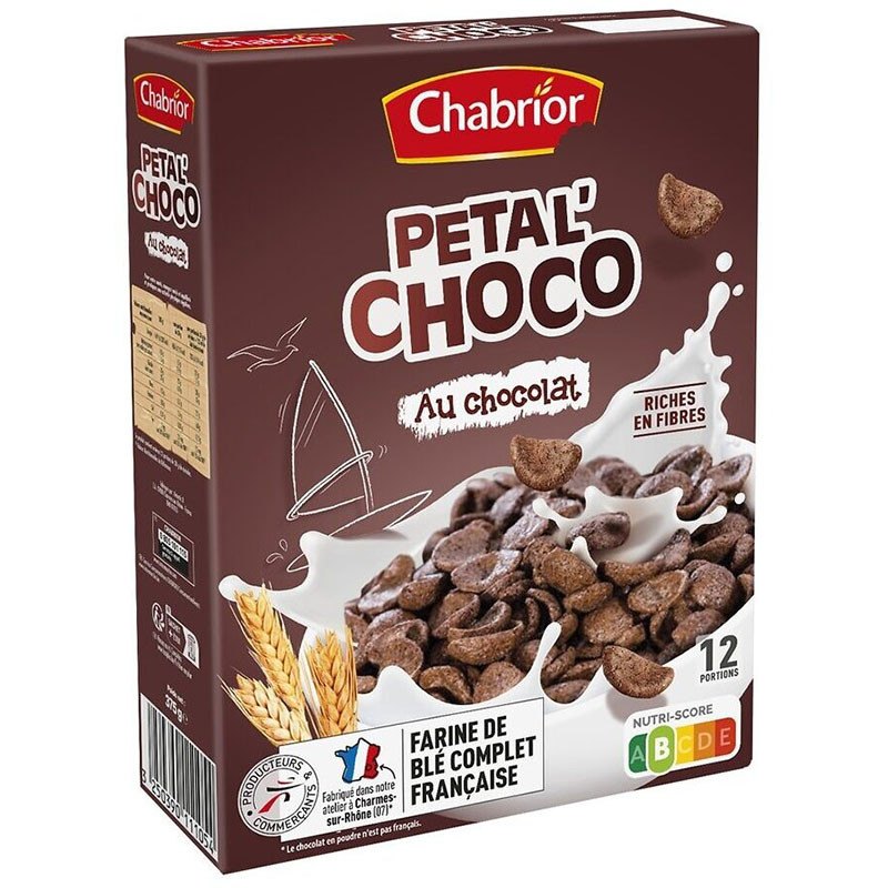 Savourez vos matins avec croustillant et gourmandise grâce aux céréales Petal’ Choco de Chabrior ! Ces délicieuses pétales au chocolat, riches en fibres, sont fabriquées avec de la farine de blé complet française.