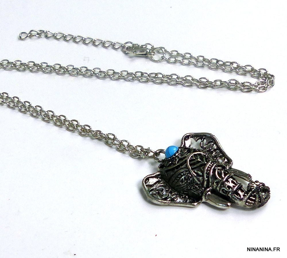 Collier Fantaisie bohème éléphant métal argenté turquoise