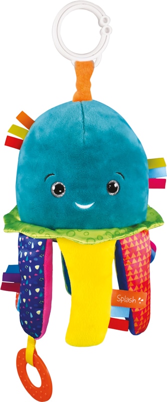 - les tentacules sont en tissu avec textures intérieures imitant un bruit de papier froissé quand on les manipule, 1 “Pouet-pouet” est inséré dans une tentacule,