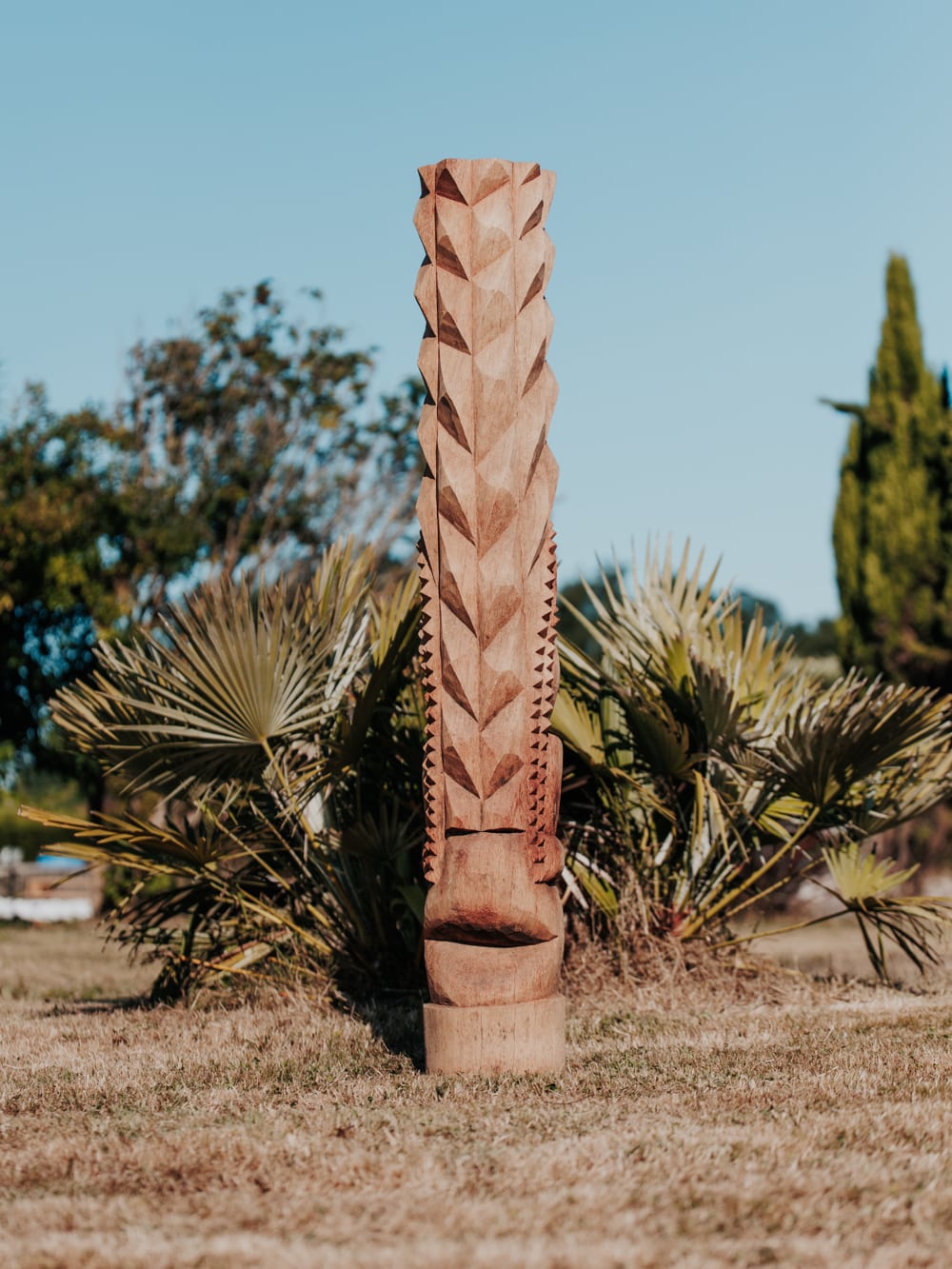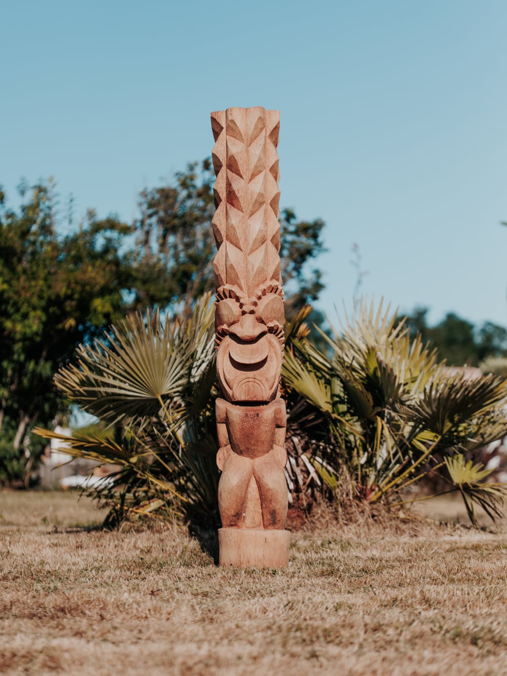 Cada estatua es única, testimonio de la habilidad y la pasión de los artesanos que utilizan técnicas transmitidas de generación en generación. Este Tiki no es sólo una obra de arte; es un pedazo de historia, que transmite la sabiduría y el encanto de la Polinesia.