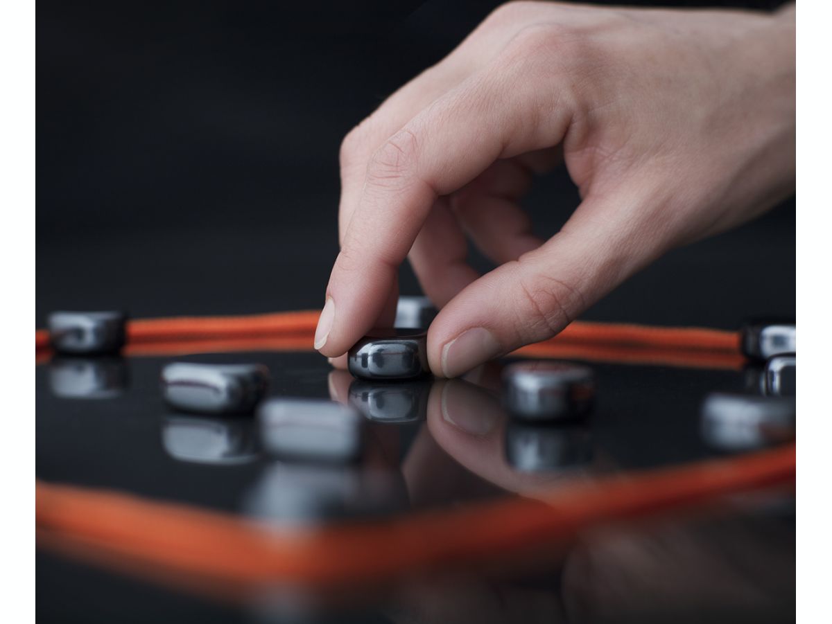 Les règles de Kluster s’expliquent rapidement : les pierres magnétiques sont réparties équitablement entre les joueurs, qui doivent placer à tour de rôle une pierre dans la zone délimitée par la corde. Le premier à poser toutes ses pierres l’emporte. Mais attention, lorsque des pierres s’aimantent lors du tour d’un joueur, il les ramasse !