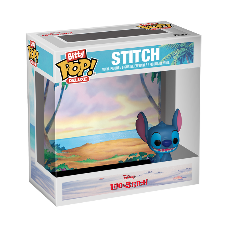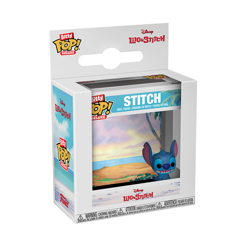 - Élargissez votre collection Disney avec cette figurine Deluxe Bitty POP ! Stitch ! Présenté dans une vitrine en acrylique dur, ce Bitty POP ! Stitch se détache sur un fond de plage assorti ! La figurine Bitty POP ! est collée sur une base acrylique qui peut être retirée de la vitrine. La vitrine comprend également un espace supplémentaire pour ajouter un autre de vos personnages Bitty POP ! préférés à la scène ! Mélangez et associez pour des combinaisons infinies ! La figurine en vinyle mesure environ 2,2 cm de haut. La vitrine en acrylique mesure environ 6,3 cm de large, 6 cm de haut et 3,2 cm de profondeur. Une figurine par paquet acheté.