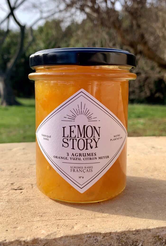 Ingrédients : yuzu, citron meyer, orange, sucre, pectine