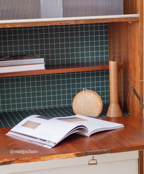 Couleurs : fond VERT ANGLAIS et petits carreaux blancs