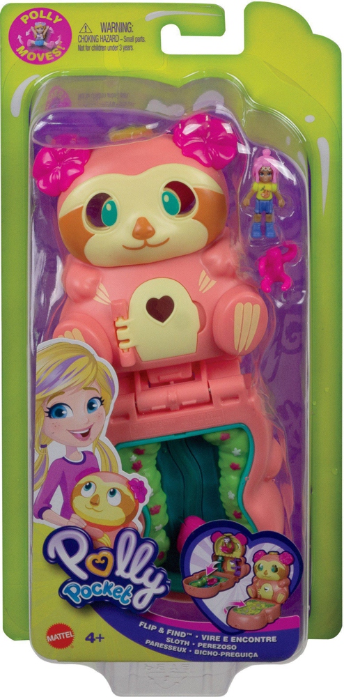 Coffret Polly Pocket modulable Paresseux des Tropiques. Ce coffret s’ouvre pour révéler un décor de jeu à thème avec une porte d’entrée qui s’ouvre ! Et pour plus de variété et un espace de jeu encore plus grand, vous pouvez retourner la partie inférieure du coffret ! Ce coffret comprend une mini-poupée avec 5 points d’articulation, un accessoire animal et 3 éléments surprises !