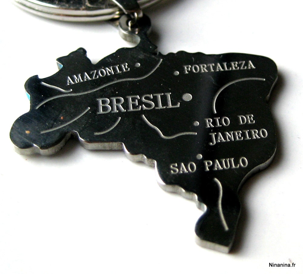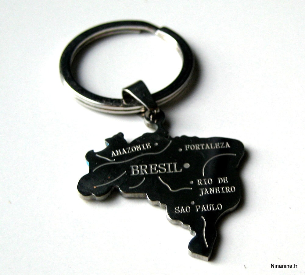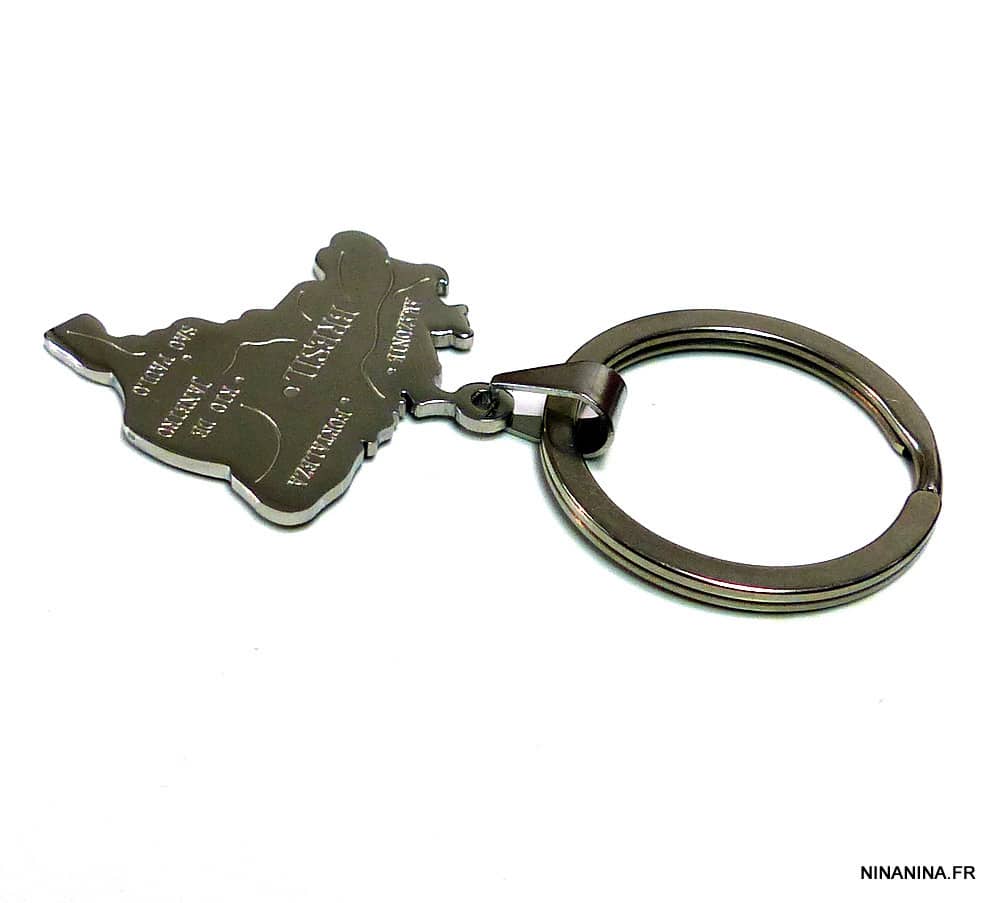 Porte clé homme pendentif BRESIL acier inoxydable composé d’un pendentif BRESIL en acier inoxydable monté sur un anneau de porte-clé en métal argenté.