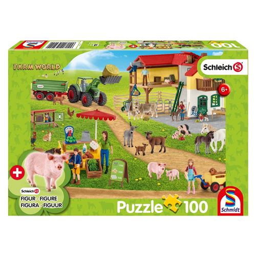La boite contient 1 puzzle de 100 pièces et 1 figurine Schleich. Puzzle en carton.