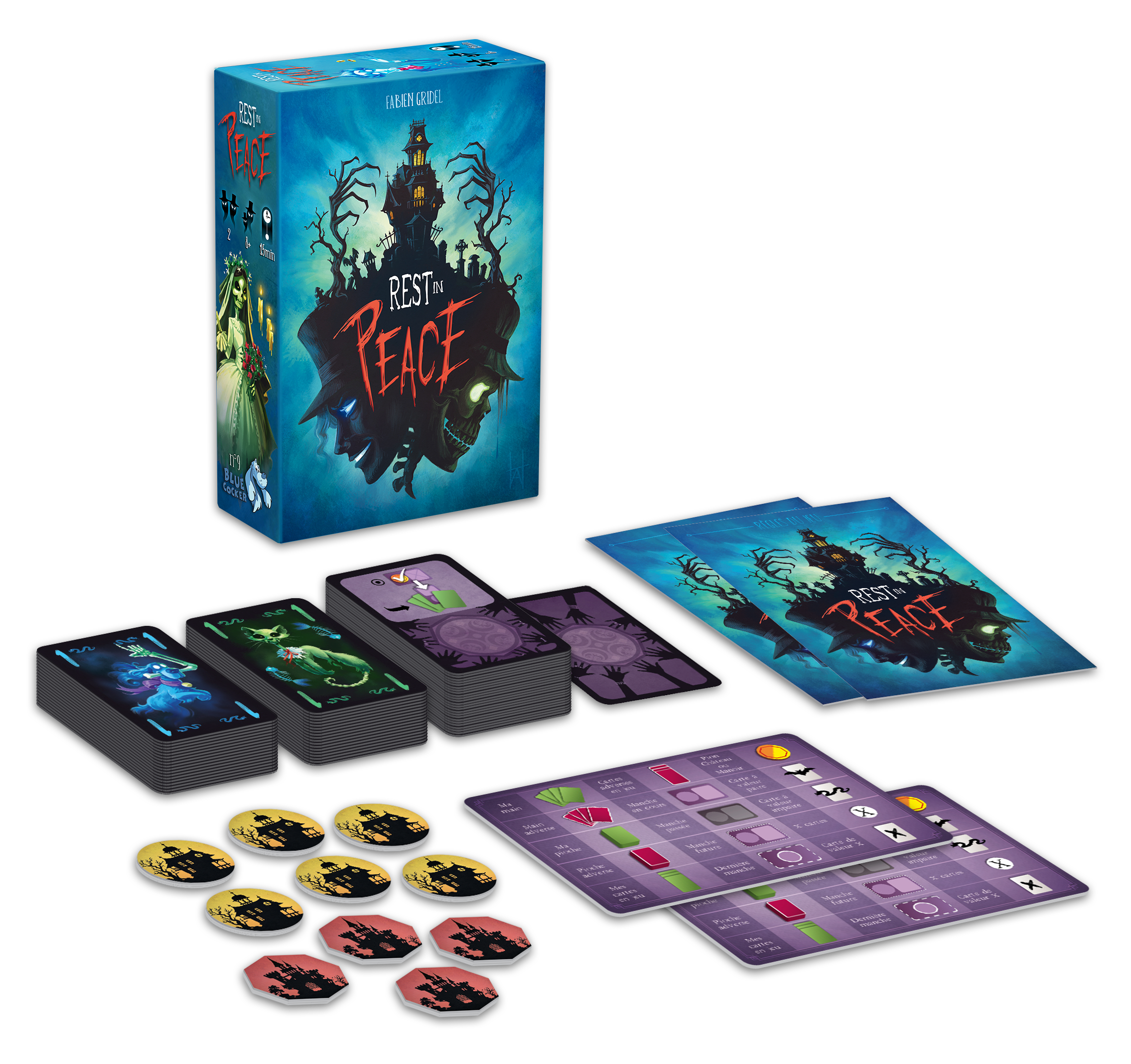 Chaque joueur a une famille de 21 fantômes (cartes de 1 à 6). À tour de rôle, chaque joueur va chercher à s’emparer de jetons Demeures en obtenant la majorité sur le lieu en jeu grâce à sa main de cartes-fantômes. Pour remporter la victoire finale, un joueur doit contrôler 3 châteaux ou 4 manoirs. Mais à chaque demeure perdue, le joueur va récupérer la carte médium associée qui lui conférera un pouvoir pour l’aider dans sa quête. Il faudra donc gérer ses forces et maîtriser le rythme du jeu pour l’emporter. De nombreuses cartes médium aux pouvoirs variés permettront des parties sans cesse renouvelées.