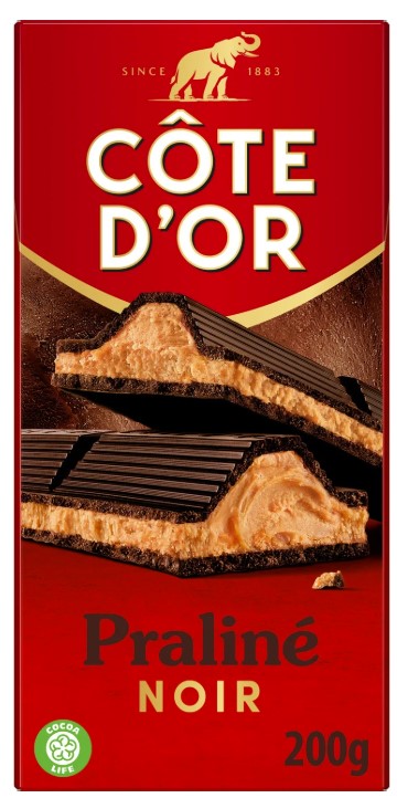 Côte d’Or Praliné fondant Noir : savourez le croquant d’un enrobage chocolat noir Côte d’Or et succombez au fondant d’un délicieux fourrage praliné au chocolat noir.